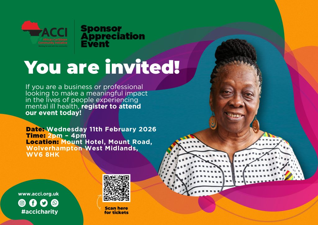 The African Caribbean Community Initiative (ACCI) is delighted to announce its upcoming Sponsor Appreciation Event, taking place on Wednesday 11 February 2026, from 2:00pm to 4:00pm, at the elegant Mount Hotel Country Manor in Wolverhampton.